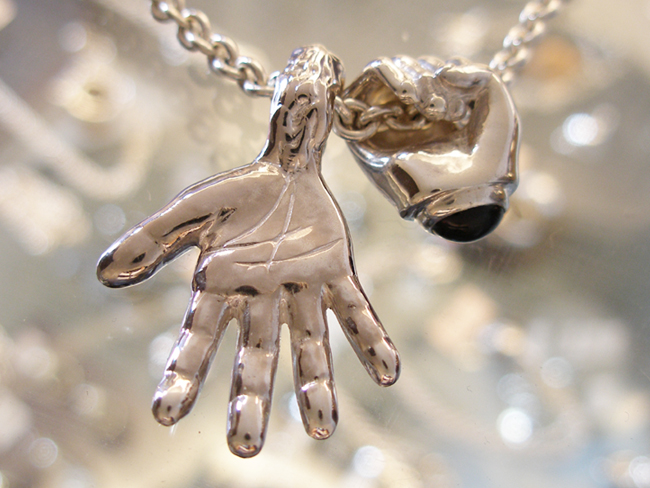 手のとなりに、顔のチャームやトップを添えるのが、ぼくの気に入っている組み合わせです。