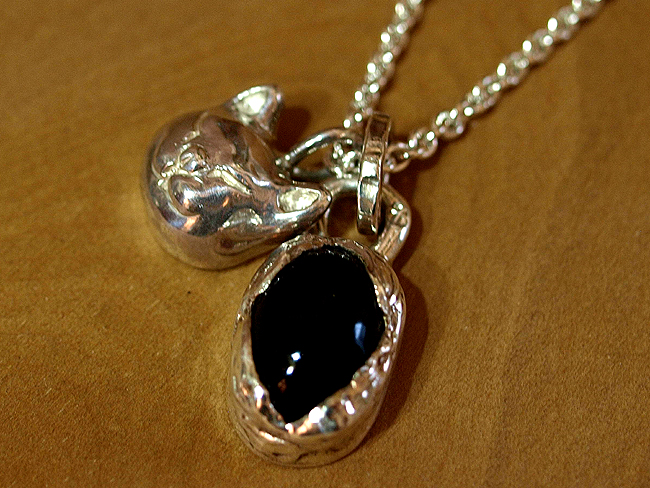 チェーンを通す金具は猫の表情に障らないよう、あえて細めにしました。